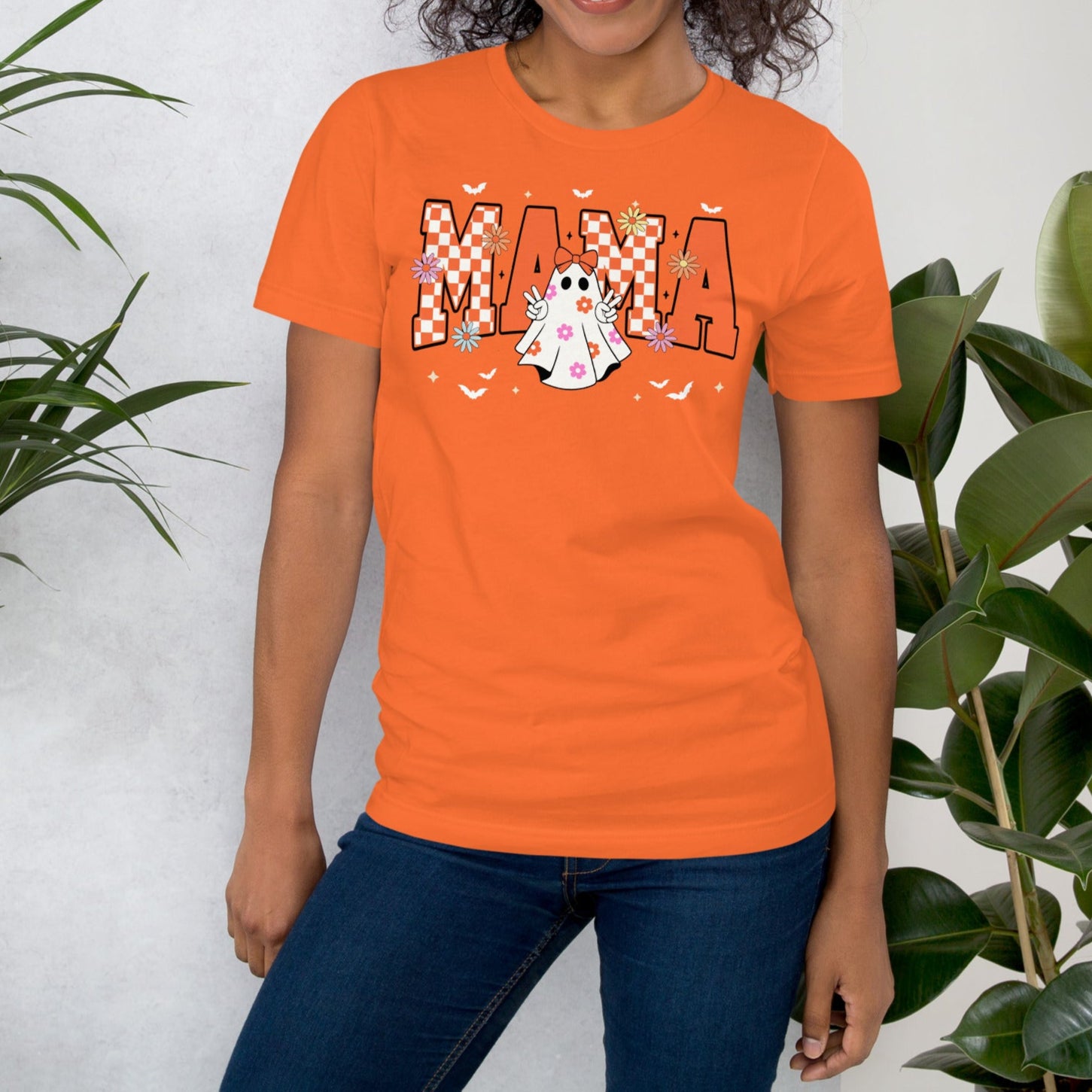 Channel the spirit of spooky season with a little 70s flair. Our Groovy Mama Ghost Halloween Tee features bold orange and green with a fun lightning bolt and ghost design for moms who love to keep Halloween playful and stylish.